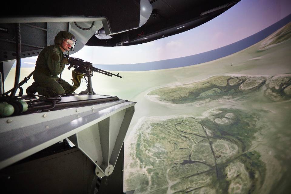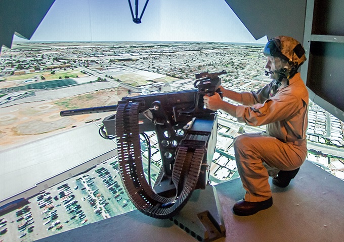 About:High Fidelity reconfigurable Helicopter Door Gunner Trainer. Possible to train left/right and ramp door gunners at the same time or individual. Training can take place during day time and night time by using the crews own personal night vision equipment. All weapons are fully functional which means all weapon procedures can be traint and while firing the shooter will experience a realistic recoil sensation.